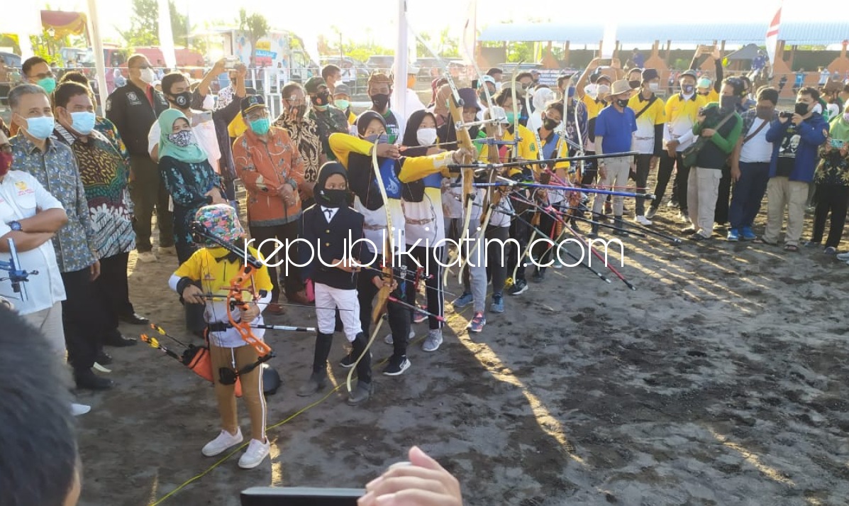 Sidoarjo (republikjatim.com) - Gubernur Jatim, Khofifah Indar Parawansa meresmikan Wisata Edukasi Olahraga Berkuda dan Panahan Yussar Stable and Riding di Desa Kalidawir, Kecamatan Tanggulangin, Sidoarjo, Sabtu (24/10/2020) sore. Yussar Stable and Riding menjadi tempat pembinaan atlet-atlet cabang olahraga berkuda dan panahan dari tingkat anak-anak hingga dewasa di Sidoarjo.
