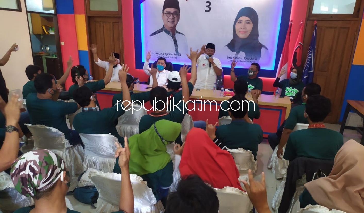 Sidoarjo (republikjatim.com) - Komunitas Sidoarjo Berkelas mendeklarasikan diri siap untuk memenangkan Pasangan Calon (Paslon) Bupati dan Wakil Bupati, Kelana Aprilianto dan Dwi Astutik (Kelana - Astutik). Deklarasi itu, disampaikan di hadapan Cabup Kelana Aprilianto dan Ketua Tim Pemenangan Kelana - Astutik, H Masnuh di Posko Pemenangan Perumahan Pondok Mutiara, Sidoarjo, Rabu (28/10/2020).