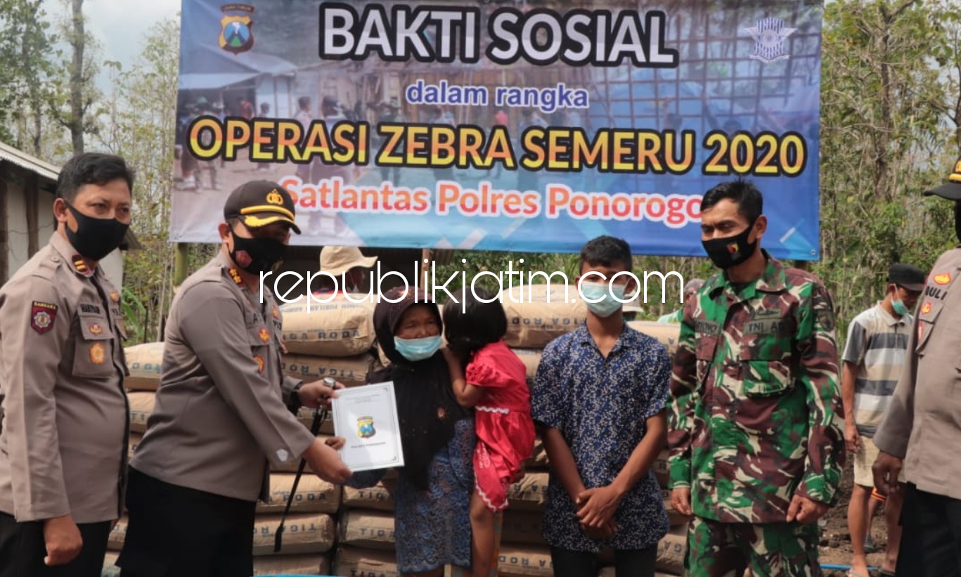 Bedah rumah dalam rangka Operasi Zebra 2020 ini bentuk Bakti Sosial yangbdilaksanakan di rumah milik Mbah Boinem. Karena rumah warga Desa Pulung Merdiko ini tak layak huni. Padahal, rumahnya dihuni bersama kedua cucunya dan rumahnya kerap bocor saat hujan turun.