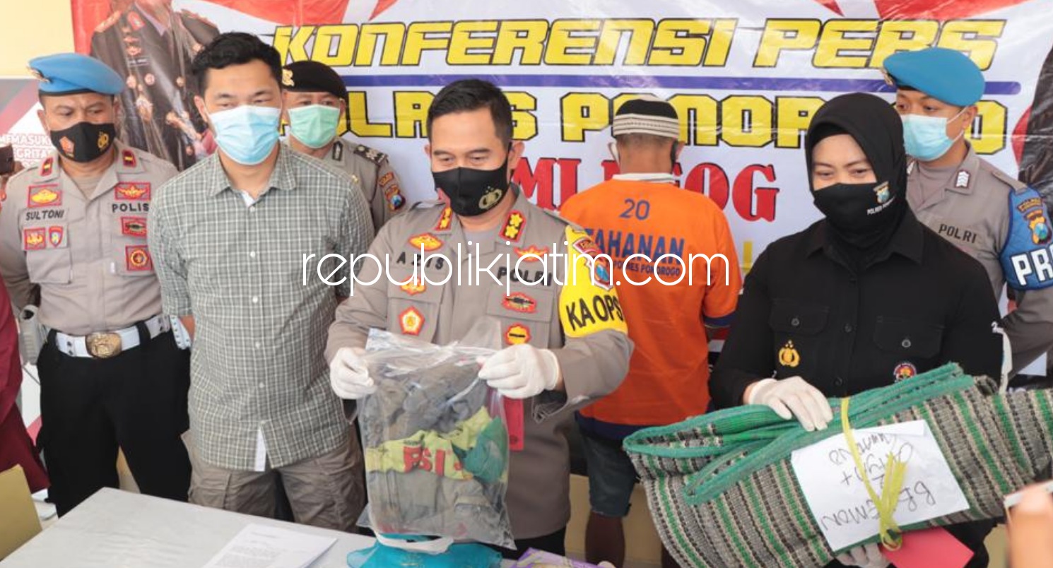 "Tersangka Suwarno (45) warga Dusun/Desa Temon, Kecamatan Sawoo, Ponorogo mendekam dalam tahanan Polres Ponorogo beserta barang buktinya. Tersangka ditahan atas laporan istrinya sendiri SH (49) yang tak lain ibu kandung Bunga," ujar Kapolres Ponorogo, AKBP Mochamad Nur Azis kepada republikjatim.com, Kamis (12/11/2020).