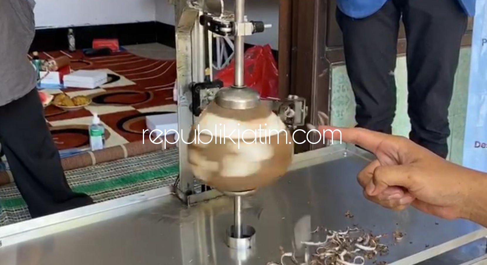 Sidoarjo (republikjatim.com) - Tim Pengabdi Masyarakat dari Departemen Teknik Biomedik, Fakultas Teknologi Elektro dan Informatika Cerdas Institut Teknologi Sepuluh Nopember (ITS) Surabaya menghasilkan Mesin Teknologi Tepat Guna (TTG). Mesin TTG yang dihasilkan tim itu berupa mesin pengupas kulit ari kelapa.