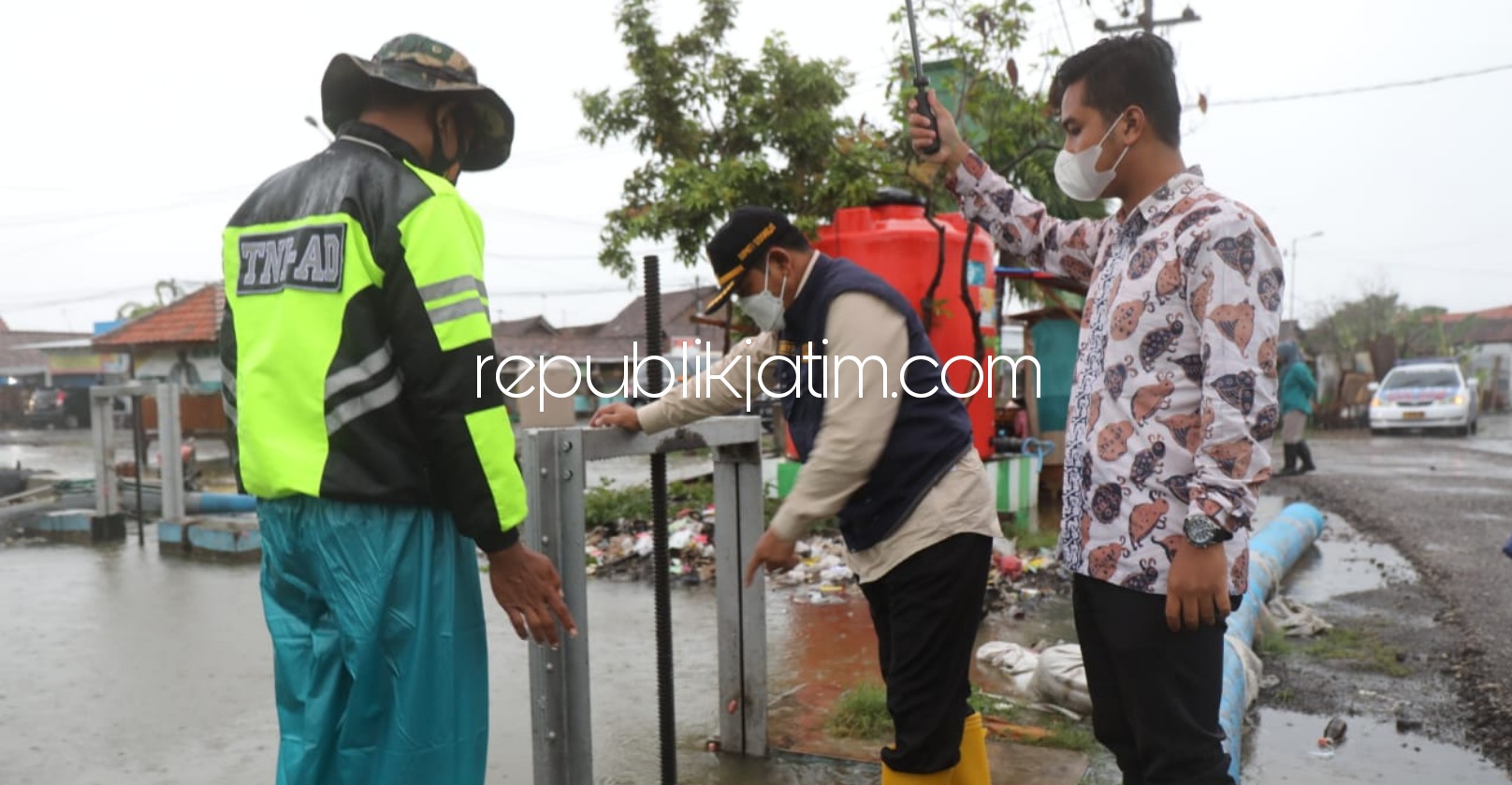 Sidoarjo (republikjatim.com) - Hujan lebat mengakibatkan puluhan rumah di Desa Kedungbanteng dan Desa Banjarasri, Kecamatan Tanggulangin, Sidoarjo terendam banjir. Ini mendorong Pj Bupati Sidoarjo, Hudiyono langsung menuju ke Tanggulangin untuk memastikan pompa penyedot air bisa berjalan normal.
