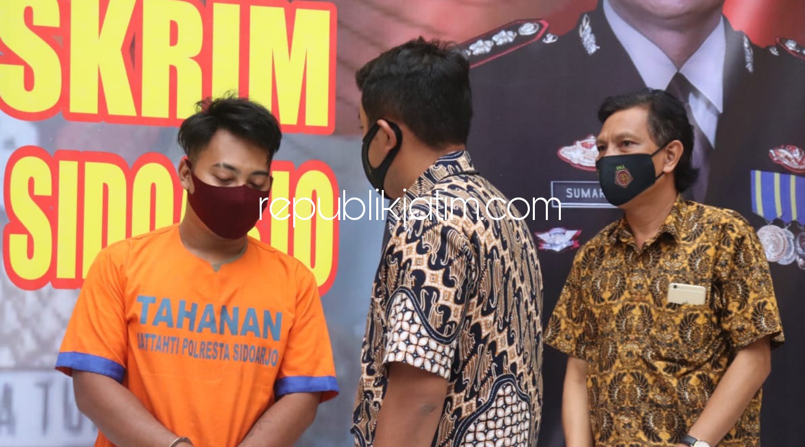 Sidoarjo (republikjatim.com) - Tersangka pelaku onani dimuka umum RS (23) warga Desa Wage, Kecamatan Taman, Sidoarjo yang sempat viral beronani di pinggir jalan Desa Bangah, Kecamatan Gedangan diamankan Polresta Sidoarjo, Jumat (11/12/2020) sore.