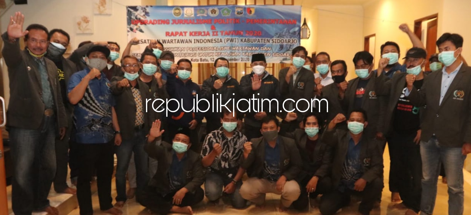 Sidoarjo (republikjatim.com) - Persatuan Wartawan Indonesia (PWI) Sidoarjo menggelar Upgrading Jurnalisme Politik-Pemerintahan di Villa Kusuma Pinus R7 JL Panderman, Oro-Oro Ombo, Batu, Sabtu (12/12/2020) malam.