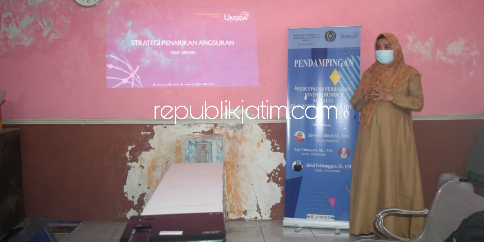 Sidoarjo (republikjatim.com) - Tim Pengadian Masyarakat (Abdimas) Universitas Muhammadiyah Sidoarjo (Umsida) berbagi strategi penarikan kredit macet yang dialami sejumlah Badan Kredit Desa (BKD) yang selama ini menjadi Unit Usaha Badan Usaha Milik Desa (Bumdes) di Sidoarjo. Kebanyakan BKD di sejumlah desa mengalami kredit macet atau penarikan cicilan tidak jalan lantaran menerapkan sistem manajemen lama. Termasuk BKD Bligo, Kecamatan Candi, Sidoarjo.