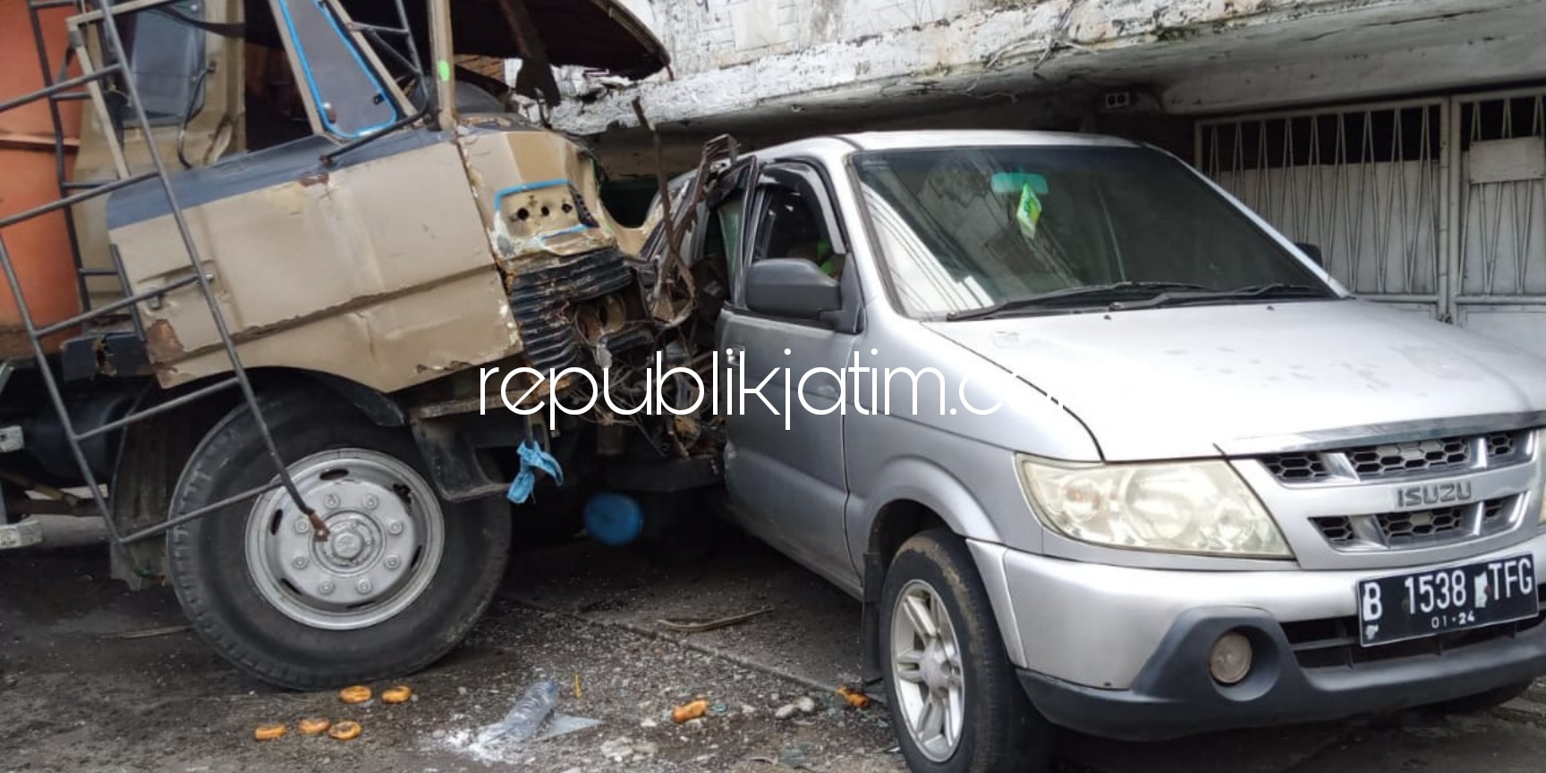 Sidoarjo (republikjatim com) - Sebuah truk derek beropol S 8499 UW yang dikemudikan Junaidi (38) warga asal JL Barat Sawah, Somor Kuneng, Kecamatan Kuwanyar, Bangkalan yang mengangkut truk fuso bernopol W 9814 NL yang melaju dari utara (Tanggulangin) menuju selatan (Porong), Kamis (17/12/2020). Diduga, rantai terputus dari truk derek hingga truk fuso terlepas menghantam mobil Isuzu Phanter Turbo LV 2.5 bernopol B 1538 TFG yang dikemudikan Riyanto (40) warga Dusun Kulo Embong, Desa Suwayuwo, Kecamatan Sukerejo, Pasuruan dari samping kiri.