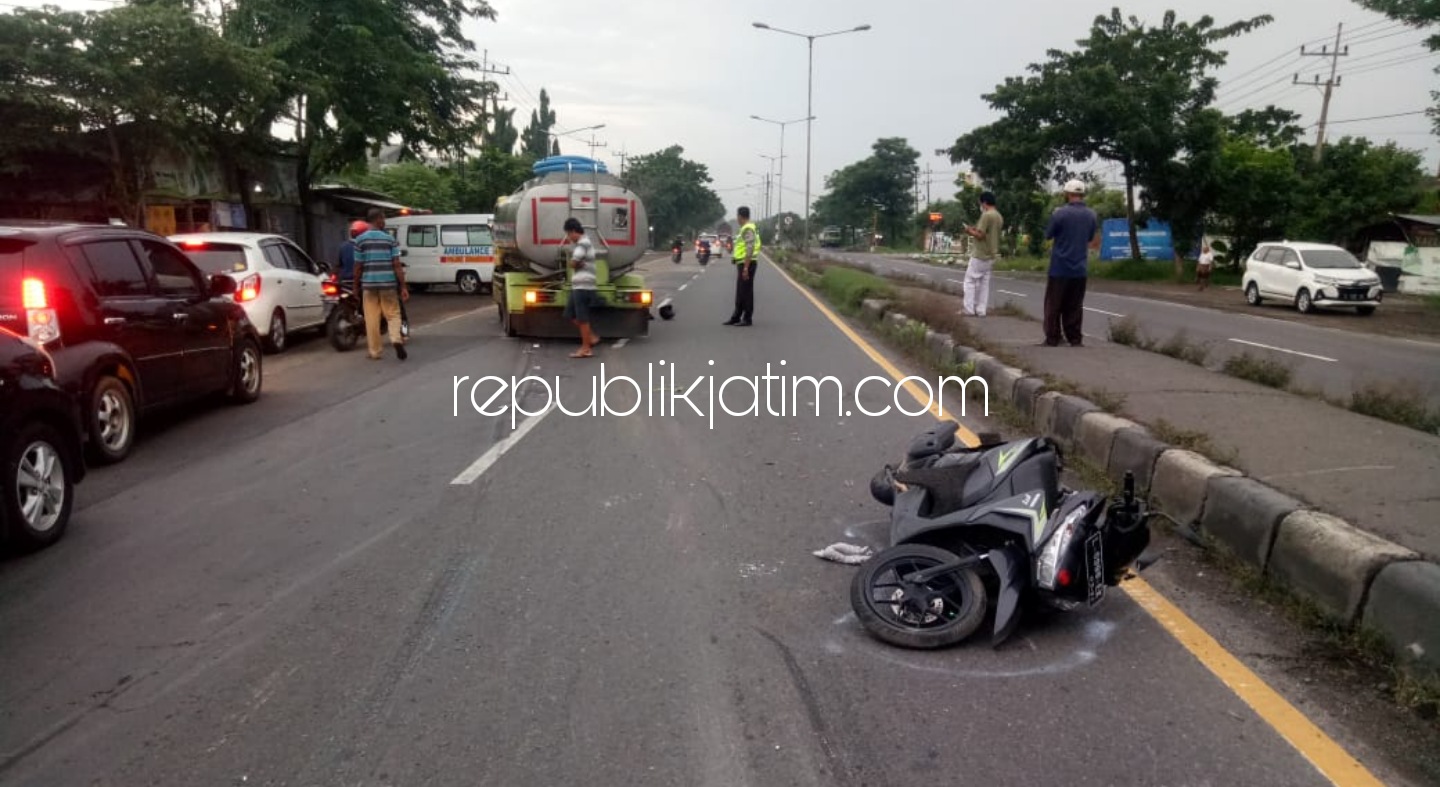 Sidoarjo (republikjatim.com) - Belum usai Laka Lantas Minggu (03/01/2021) kemarin, yang menewaskan seorang pengendara motor di JL Raya Surabaya - Mojokerto akibat terlindas ban truk trailer. Kali ini, kecelalaan kembali terjadi dengan korban pengendara motor di Bypass Balongbendo, Sidoarjo, Senin (04/01/2021). Korban terlindas ban truk tangki air dan harus menghembuskan nafas terakhir di lokasi kejadian.