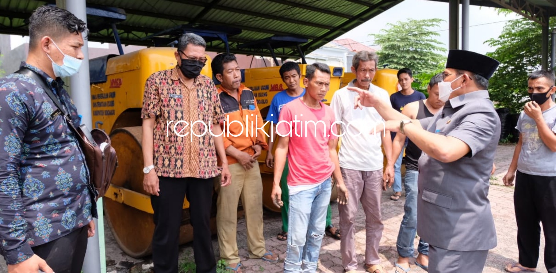 Sidoarjo (republikjatim.com) - Gara-gara tidak puas atas kinerja Dinas Pekerjaan Umum Bina Marga dan Sumber Daya Air (PUBM dan SDA) Pemkab Sidoarjo, Pj Bupati Sidoarjo, Hudiyono terpaksa menggelar Inspeksi Mendadak (Sidak), Selasa (05/01/2021). Sidak ini, lantaran Pj Bupati menilai sangat lamban dalam memperbaiki jalan rusak di Desa Kwangsan, Kecamatan Sedati, Sidoarjo.