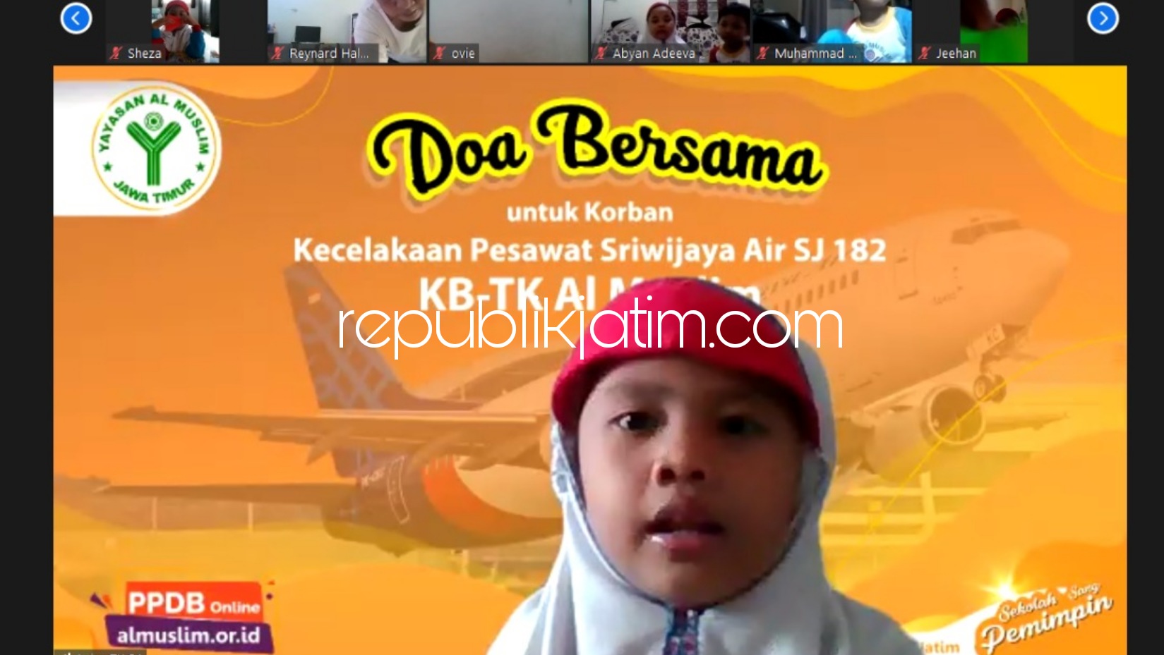 Sidoarjo (republikjatim.com) - KB-TK Al Muslim menggelar Doa Bersama untuk korban kecelakaan pesawat Sriwijaya Air SJ 182 yang terjadi pada 9 Januari 2021 lalu. Kegiatan yang dilaksanakan via media virtual zoom meeting ini diikuti 140 siswa dan orang tua siswa serta guru.
