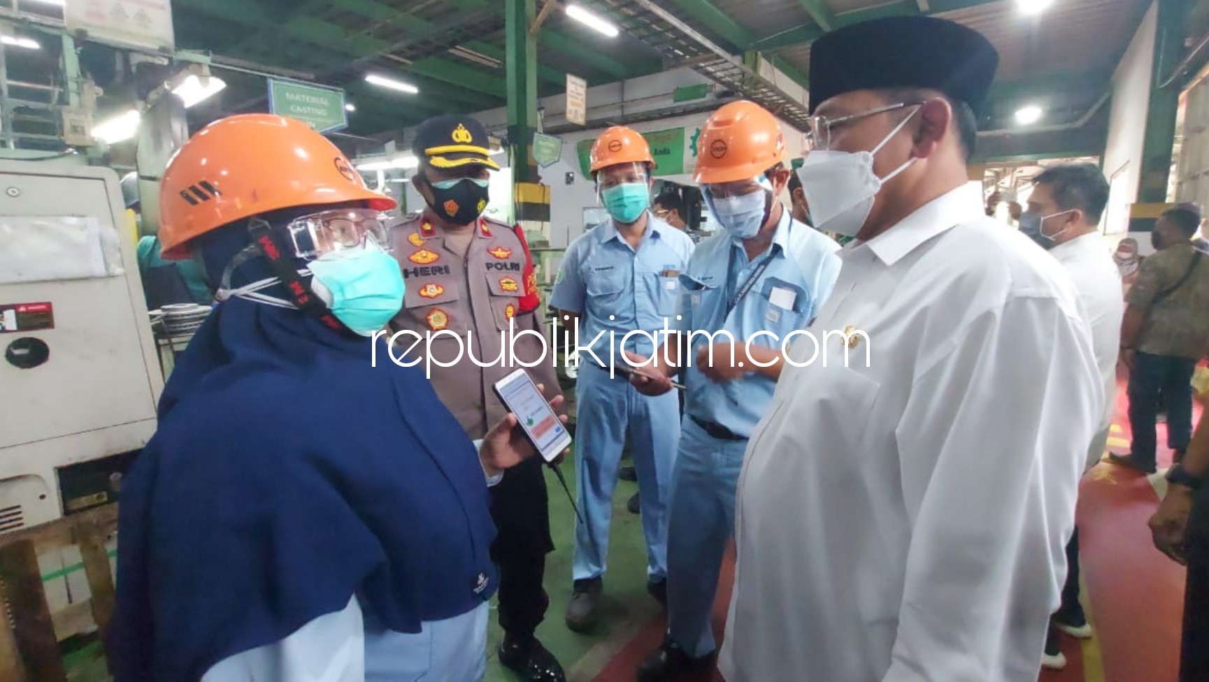 Didampingi Camat, Kapolsek dan Danramil Gedangan, satu per satu di cek mulai dari jalur karyawan masuk ke area pabrik sampai ke tempat kerja. Secara umum industri ini sudah menerapkan protokol kesehatan dan sudah patuh aturan PPKM.