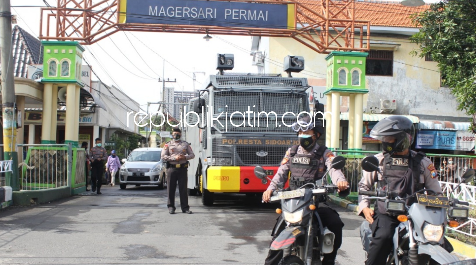 Sidoarjo (republikjatim.com) - Di tengah pelaksanaan Pemberlakuan Pembatasan Kegiatan Masyarakat (PPKM) jilid II, untuk menekan laju penyebaran Covid-19 yang sampai sekarang masih belum berakhir, Polresta Sidoarjo dan jajaran tidak hanya masif membagikan masker. Akan tetapi, melaksanakan penyemprotan disinfektan di sejumlah wilayah padat penduduk.