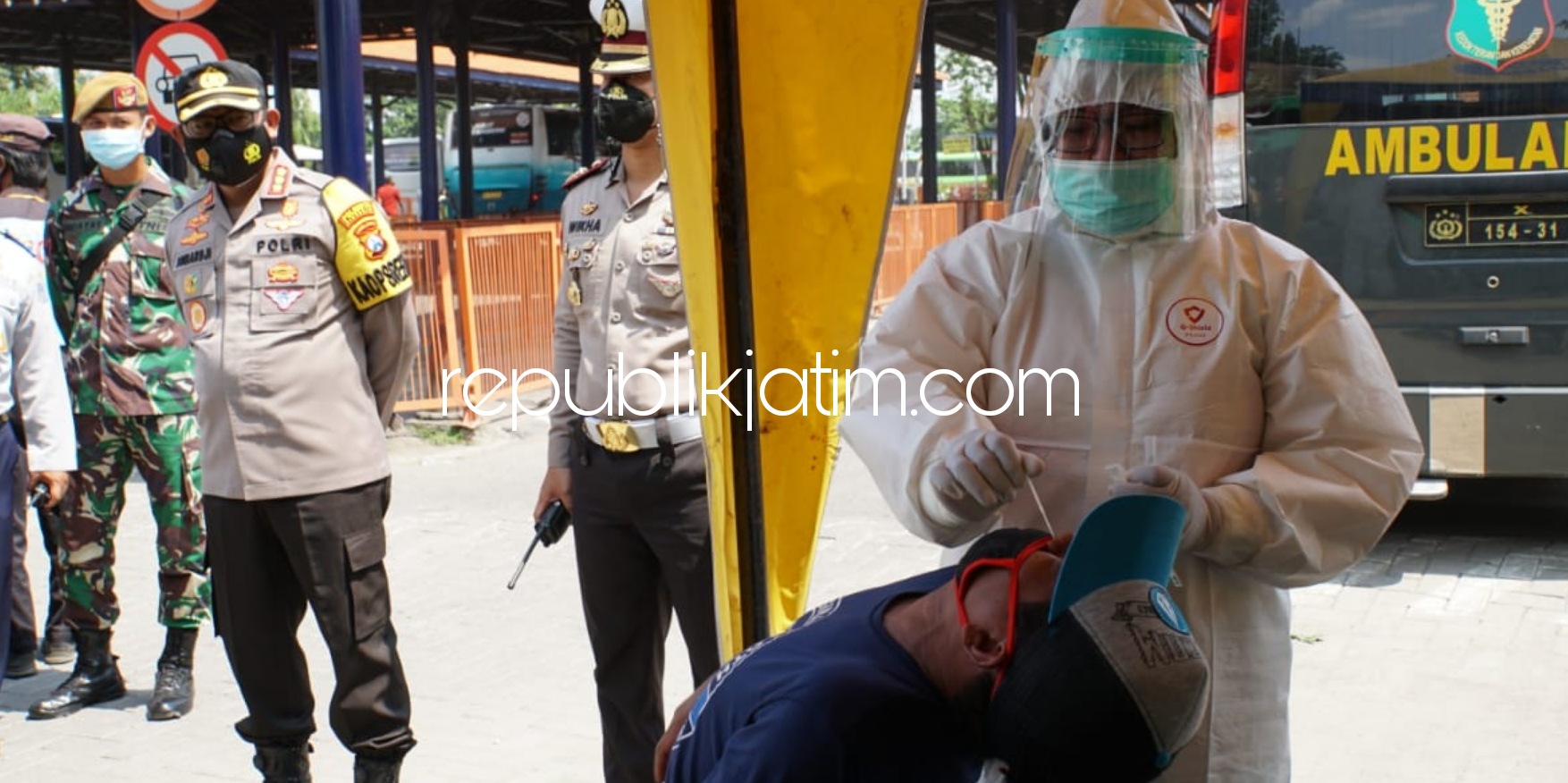 Penyekatan ini untuk kendaraan bernopol luar kota Sidoarjo, berlangsung di Pos Lantas Waru, depan Pusdik Sabhara Porong, By Pass Krian, juga diberlakukan tes rapid antigen terhadap penumpang bus dari luar kota di Terminal Purabaya, Bungurasih, Kecamatan Waru.