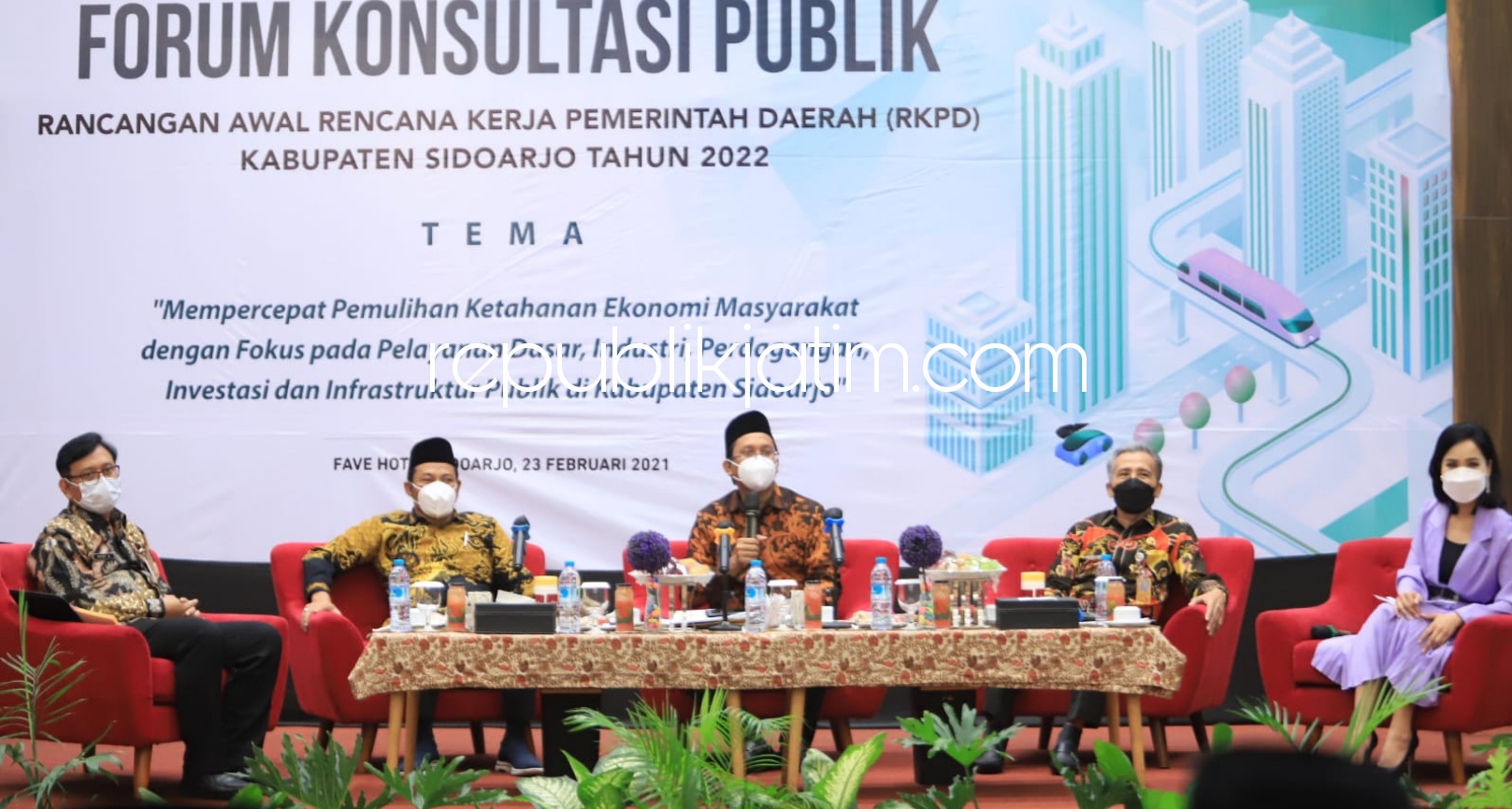 Sementara Pj Bupati Sidoarjo, Hudiyono yang hadir dalam RKPD Tahun 2022 Pemkab Sidoarjo konsentrasi pada percepatan pemulihan ekonomi masyarakat. Ada lima fokus untuk mempercepat pemulihan ekonomi Sidoarjo. Yakni pelayanan dasar, Industri, perdagangan, Investasi dan Infrastruktur publik.
