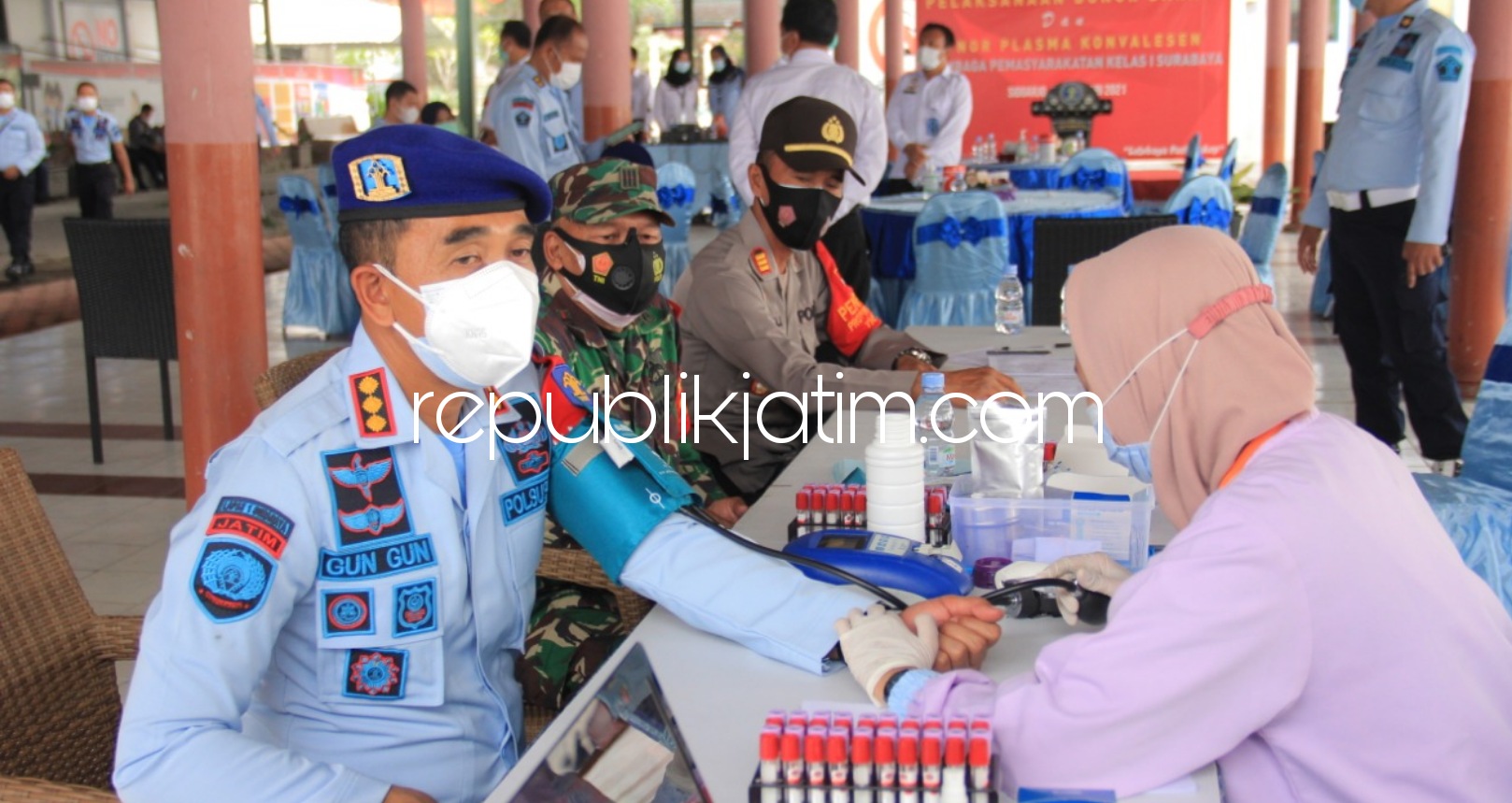 Sidoarjo (republikjatim.com) - Lapas Kelas I Surabaya di Porong pro aktif dalam penanganan Covid-19. Para pegawai dan Warga Binaan Pemasyarakatan (WBP) berbondong-bondong mengikuti donor darah plasma konvalesen, Kamis (25/02/2021).