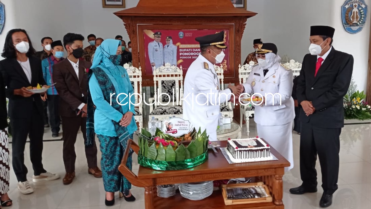 Ponorogo (republikjatim.com) - Bupati dan Wakil Bupati Ponorogo, Sugiri Sancoko dan Lisdyarita setibanya di Rumah Dinas (Rumdin) disambut pejabat, pendukung dan ibu kandungnya. Bupati dan Wakil Bupati langsung sungkem kepangkuan ibu mereka berdua yang sudah menanti di Pringgitan Pemkab Ponorogo itu.