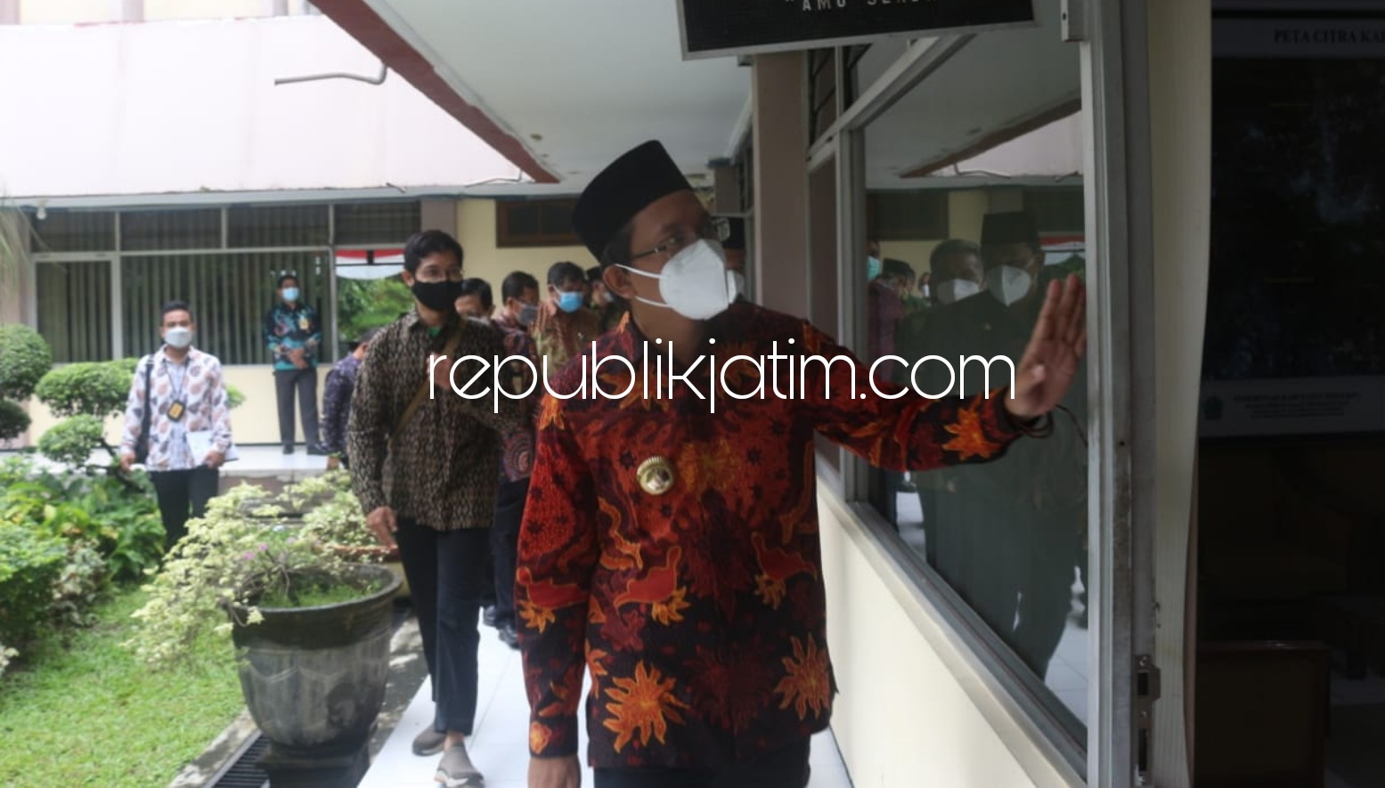 Sidoarjo (republikjatim.com) - Untuk pertamakalinya sejak dilantik sebagai Bupati dan Wakil Bupati Sidoarjo, Ahmad Muhdlor Ali (Gus Muhdlor) dan Subandi yang akrab disapa Abah Bandi melihat tempat kerjanya di kantor Setda Pemkab Sidoarjo, Selasa (02/03/2021). Kunjungan ini dilakukan seusai menggelar apel bersama Bupati dan Wakil Bupati di Alun-alun Sidoarjo.