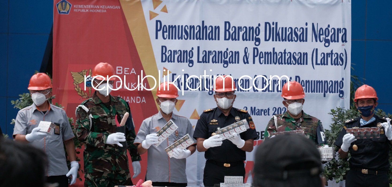 Sidoarjo (republikjatim.com) - KPPBC Tipe Madya Pabean Juanda memusnahkan sebanyak 1,28 juta batang rokok illegal senilai Rp 2 miliar lebih, Rabu (03/03/2021). Selain itu, juga memusnahkan sejumlah barang pornografi berupa sex toys.