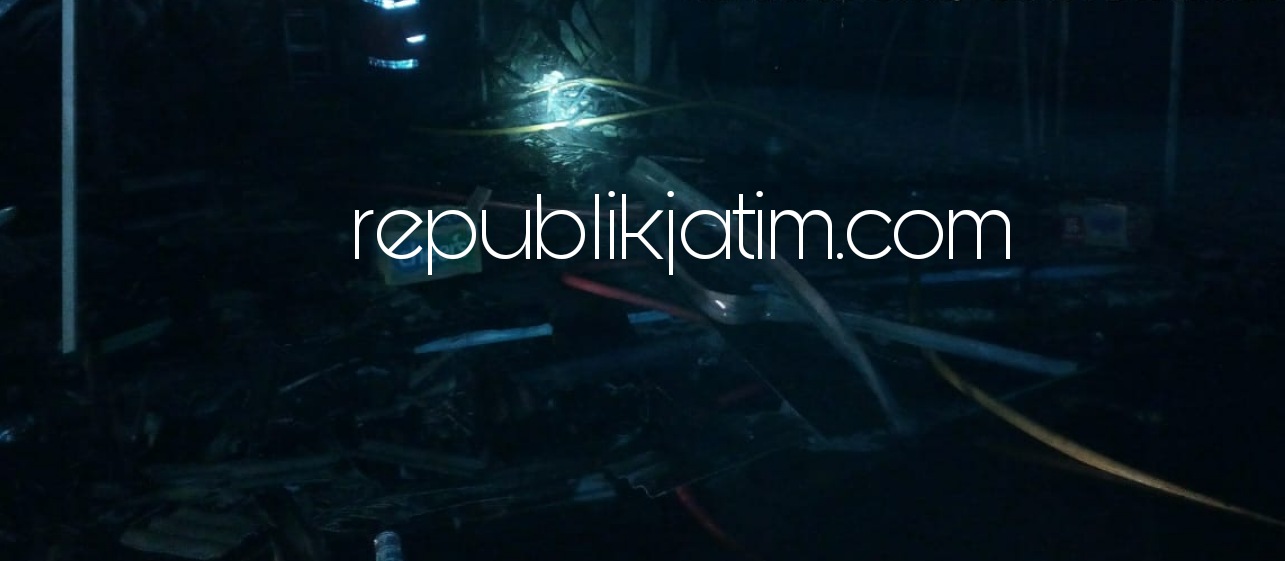 Sidoarjo (republikjatim.com) - Sebanyak 11 kios usaha berukuran 2,5 x 7 meter yang ada di depan Ramayana Bungurasih, Kecamatan Waru, Sidoarjo ludes terbakar, Selasa (09/03/2021) malam. Hingga kini, belum diketahui penyebab utama kebakaran itu. Namun sebagian pedagang menduga kebakaran itu, akibat hubungan arus pendek (korsleting) aliran listrik.