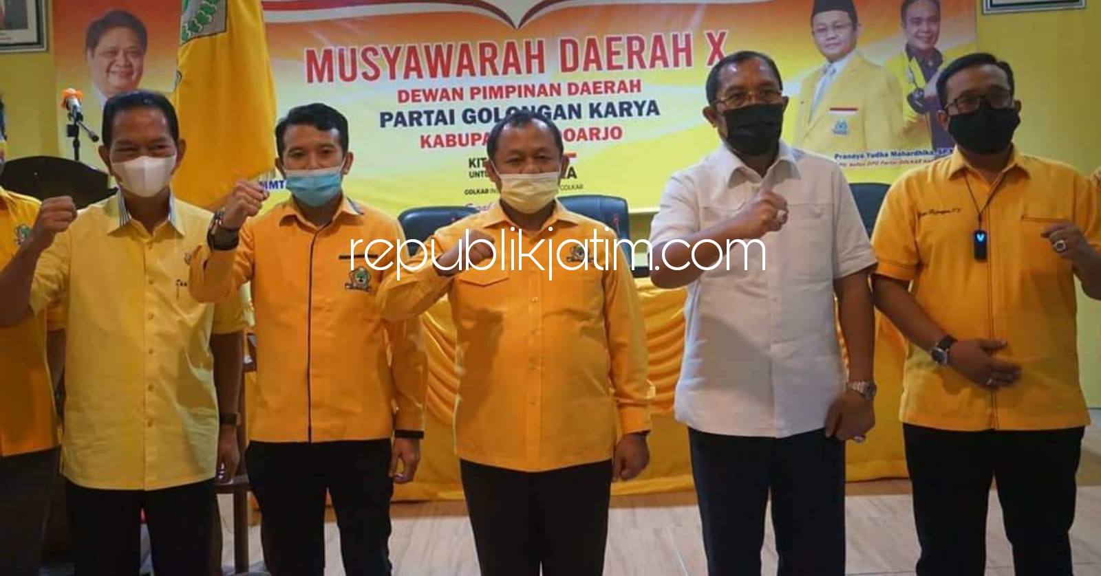 Sidoarjo (republikjatim.com) - Tongkat estafet kepemimpinan Ketua DPD Partai Golkar Sidoarjo sudah berganti dari Warih Andono kepada Adam Rusydi. Pergantian itu, melalui Musyawarah Daerah (Musda) X DPD Partai Golkar Sidoarjo yang digelar di kantor DPD Golkar Jawa Timur, di Surabaya, Sabtu (20/03/2021) sore kemarin.