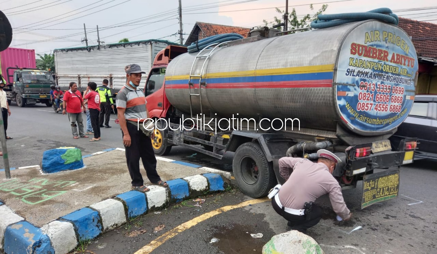 Sidoarjo (republikjatim.com) - Kecelakaan maut kembali terjadi di jalur Surabaya-Mojokerto, Jumat (26/03/2021). Sebuah truk tangki menabrak dan melindas seorang pejalan kaki.