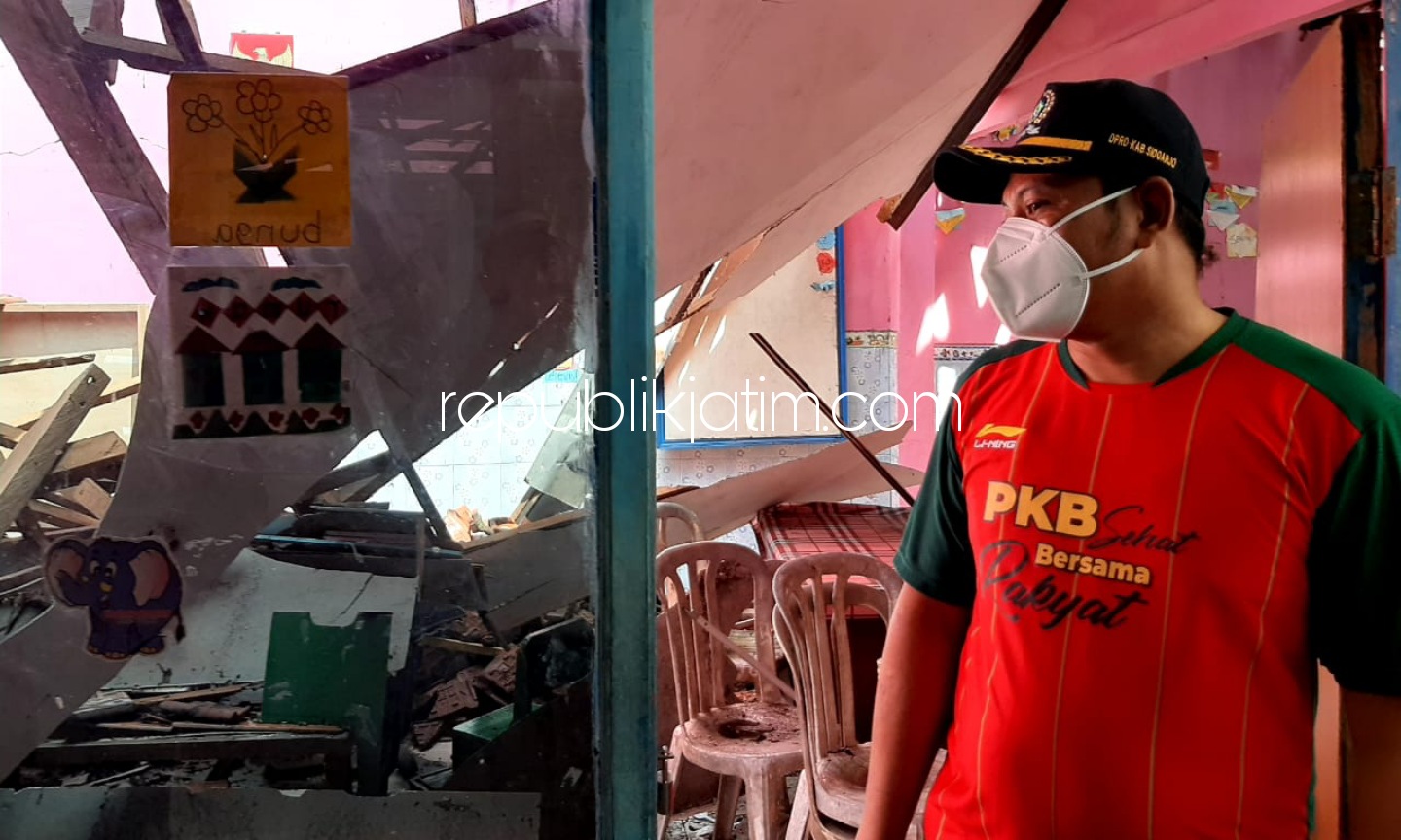 Sidoarjo (republikjatim.com) - Gedung TK Dharma Wanita Persatuan Desa Bakalan Wringinpitu, Kecamatan Balongbendo, Sidoarjo yang tak digubris Dinas Pendidikan Pemkab Sidoarjo hingga ambruk mendapat perhatian Wakil Bupati (Wabup) Sidoarjo, Subandi. Wabup langsung mengecek kondisi TK yang sehari-hari dipakai belajar mengajar puluhan siswa yang berasal dari Desa Bakalan Wringinpitu itu, Minggu (28/03/2021).