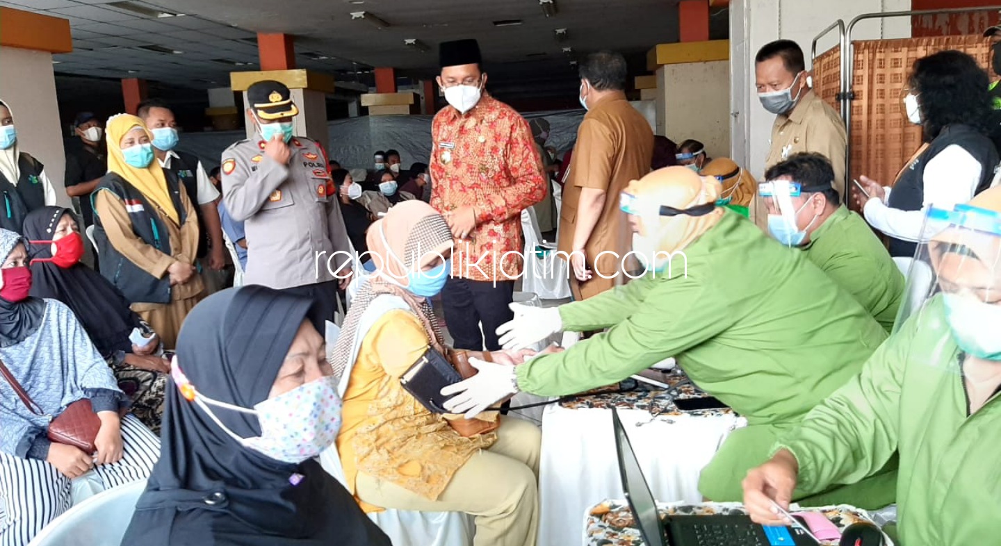 Sidoarjo (republikjatim.com) - Ratusan pedagang pasar Krian mulai divaksinasi AstraZeneca oleh petugas Dinas Kesehatan (Dinkes) Pemkab Sidoarjo melalui Puskesmas Krian, Senin (29/03/2021). Rencananya, setiap hari Puskesmas Krian bakal mengalokasikan vaksin untuk 300 orang khusus untuk pedagang.