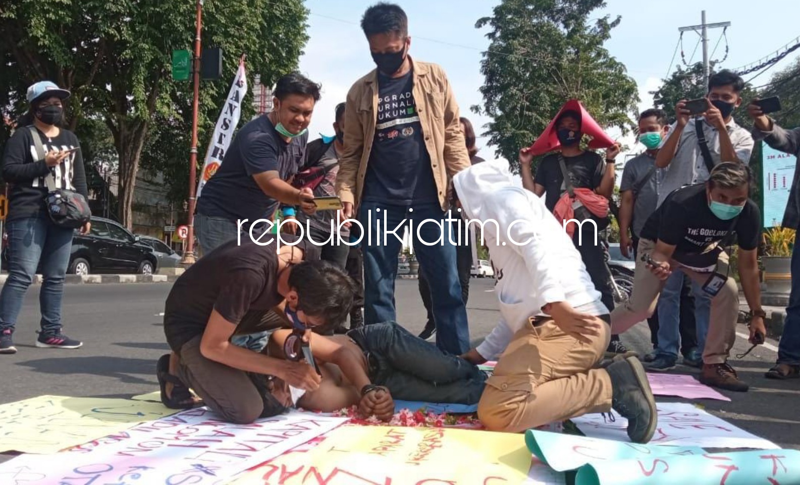 Sementara dalam aksi itu, massa juga sempat menggelar aksi teatrikal kronologi pengeroyokan dan tindak kekerasan yang dilakukan oknum aparat terhadap jurnalis Tempo Surabaya, Nurhadi. Selain itu, juga menggelar aksi tabur bunga dan meletakkan ID Card sebagai identitas kerja para jurnalis itu.