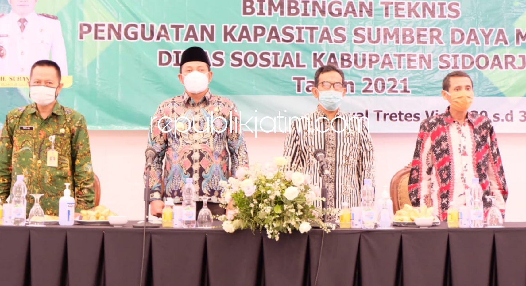Sidoarjo - Wakil Bupati (Wabup) Sidoarjo, Subandi membuka secara resmi Bimbingan Teknis (Bimtek) Penguatan Kapasitas Sumber Daya Manusia (SDM) Dinas Sosial (Dinsos) Pemkab Sidoarjo, di Tretes View Hotel, Kecamatan Prigen, Kabupaten Pasuruan. Kegiatan itu, bakal diselenggarakan selama 2 hari kedepan mulai tanggal 30 sampai 31 Maret 2021.