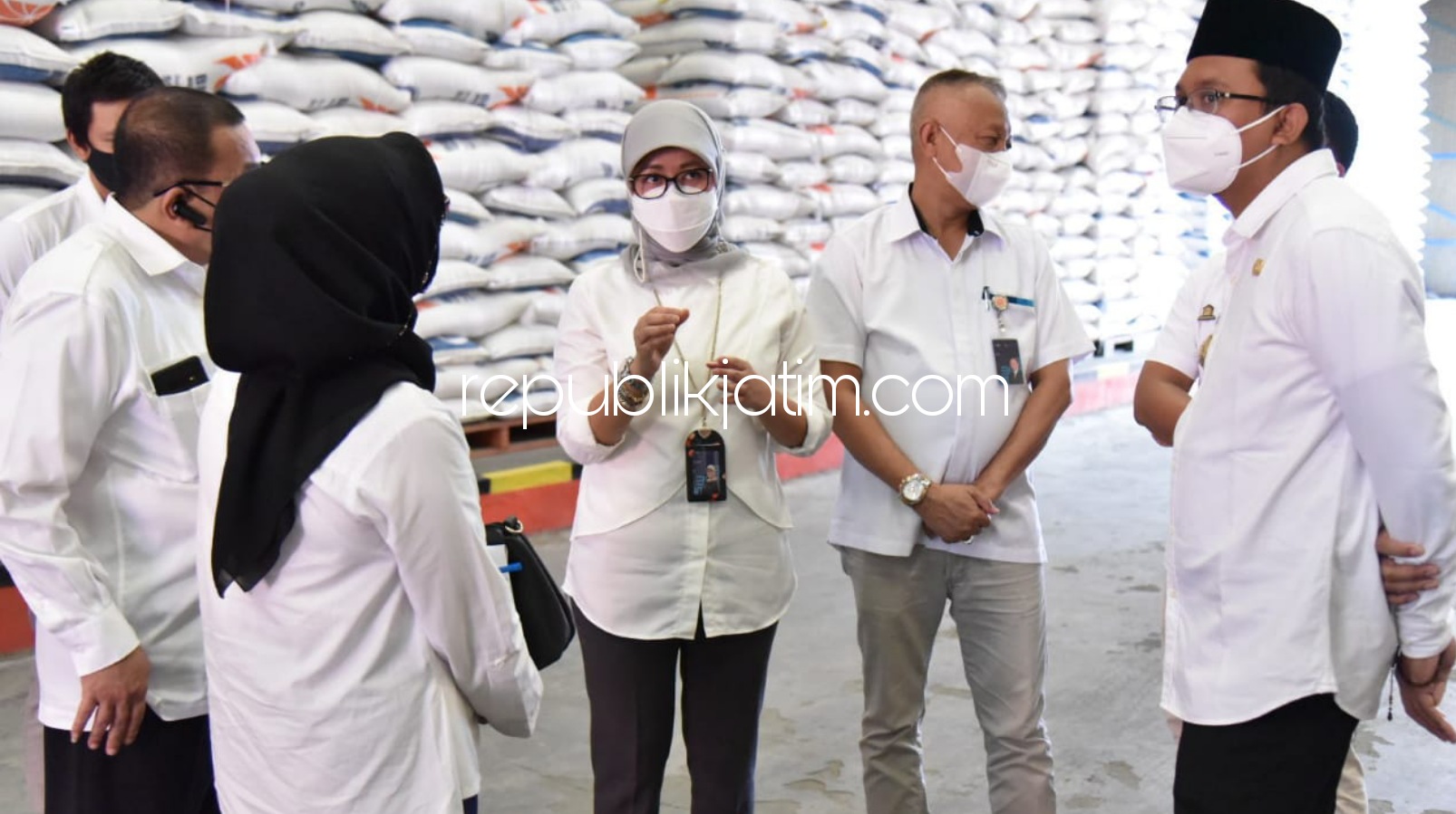 Sidoarjo (republikjatim.com) - Bupati Sidoarjo, Ahmad Muhdlor Ali (Gus Muhdlor) mendatangi Gudang Bulog bersama Direktur Bisnis Perum Bulog Pusat, Febby Novita serta jajaran OPD terkait. Rombongan mengecek stok beras di Gudang Perum Bulog Sub Divre Wilayah I Buduran, Sidoarjo, Rabu (07/04/2021).