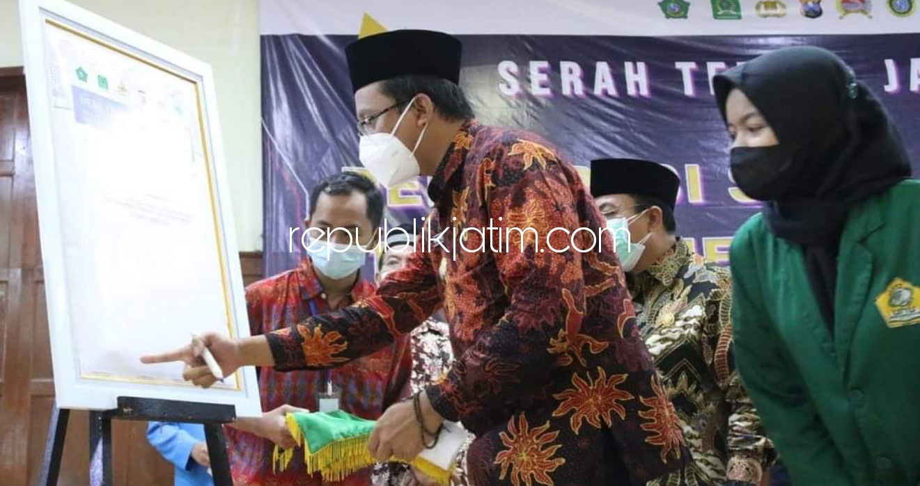 Sidoarjo (republikjatim.com) - Tita Lailatunisa resmi menjabat sebagai Ketua Aliansi BEM Sidoarjo. Serah terima jabatan ini sekaligus menjadi ajang Deklarasi Sidoarjo Tolak Terorisme dan Radikalisme di Gedung Rahmatul Ummah, Sidoarjo, Rabu (21/04/2021) sore.