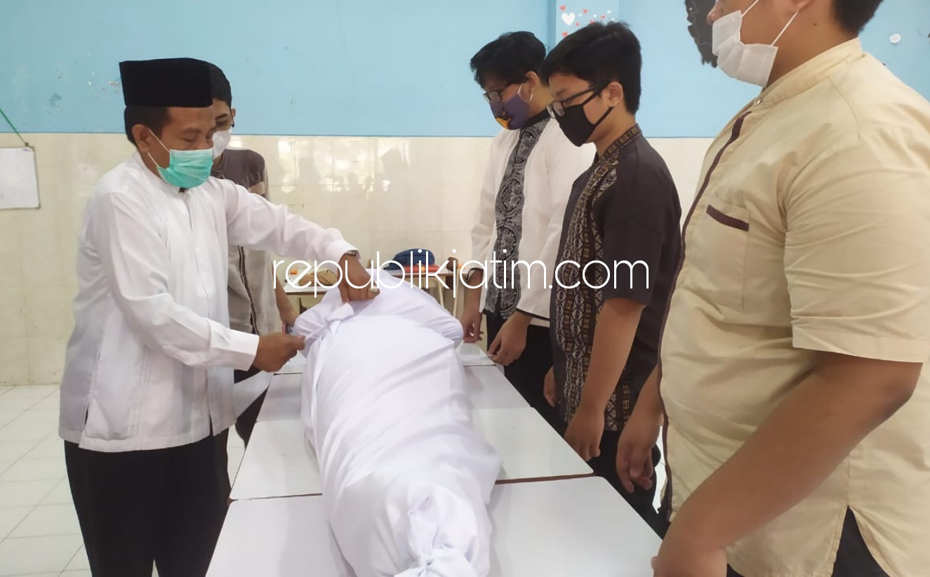 Sidoarjo (republikjatim.com) - Ratusan siswa kelas XI SMA Muhammadiyah 2 (Smamda) Sidoarjo mendapatkan pelajaran khusus hari ini. Yakni praktek soal merawat jenazah (Baitul Arqom), Jumat (23/04/2021).