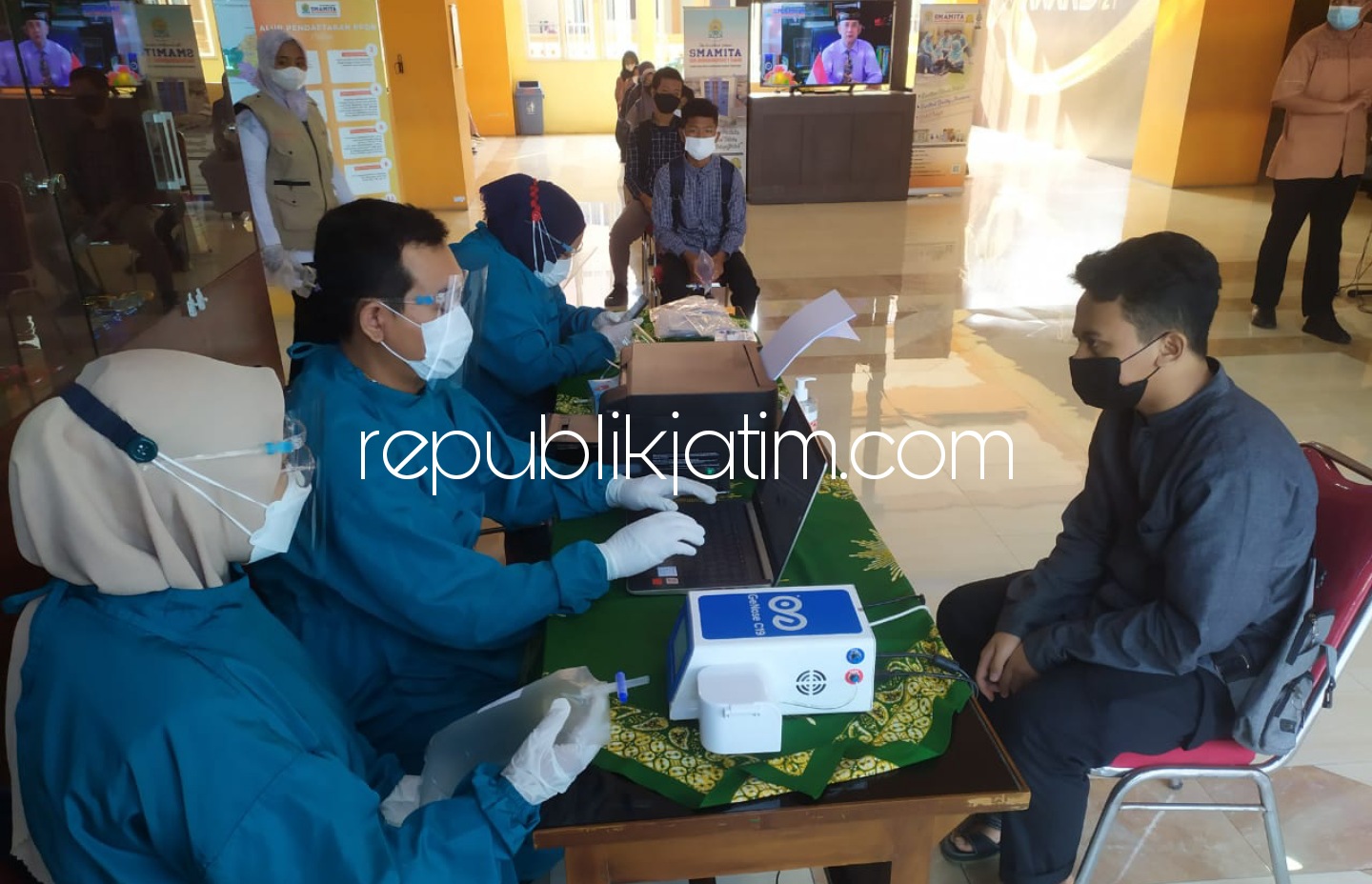 Sidoarjo (republikjatim.com) - Sekitar 855 siswa dan siswi, guru, staf dan karyawan SMA Muhammadiyah 1 Taman (Smamita) menjalani tes GeNose C19. Upaya ini sebagai salah satu langkah, untuk mengantisipasi sekaligus mendeteksi dini bagi yang positif atau terdeteksi terpapar Covid-19.