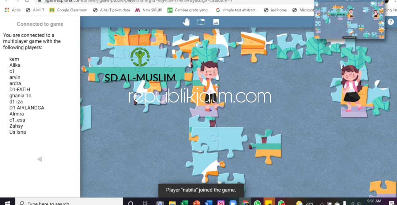 Sidoarjo (republikjatim.com) - Semakin mendekati waktu pelaksaan, semakin banyak pertanyaan penasaran dari siswa kelas 1 SD Al Muslim saat mendapat berita bakal digelar outbound secara virtual. Mereka melontarkan pertanyaan yang beragam terkait outbound virtual itu. Alasannya, mereka sudah tidak sabar untuk segera mengikuti outbound di hari Sabtu itu.