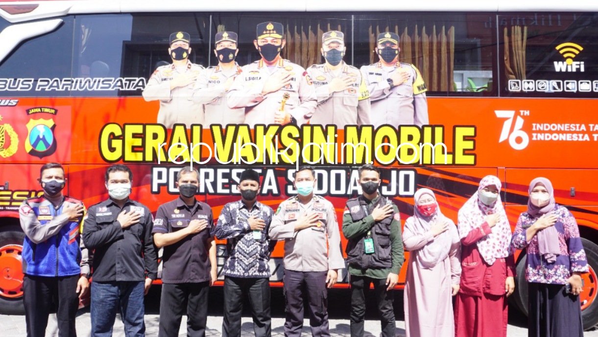 Sidoarjo (republikjatim.com) - Akselerasi vaksinasi terus dilakukan Polresta Sidoarjo. Sejumlah kendaraan bermotor vaksinasi keliling untuk melayani vaksinasi masyarakat hadir di sekolah Nurul Hikmah, Kecamatan Buduran dan sejumlah desa, Selasa (19/10/2021).