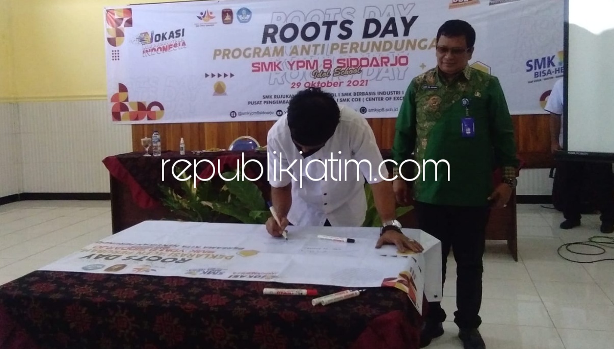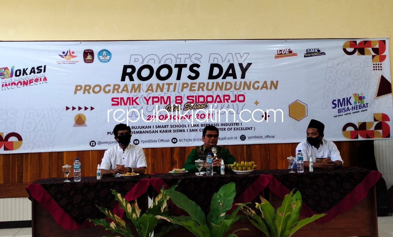 Acara bertema Roots Day Program Anti Perundungan ini diresmikan Kepala Cabang Dinas Pendidikan Jawa Timur Wilayah Sidoarjo - Surabaya, Lutfi Isa Ansori didampingi Kepala SMK YPM 8 Sidoarjo, Dr Kisyanto, Jumat (29/10/2021).