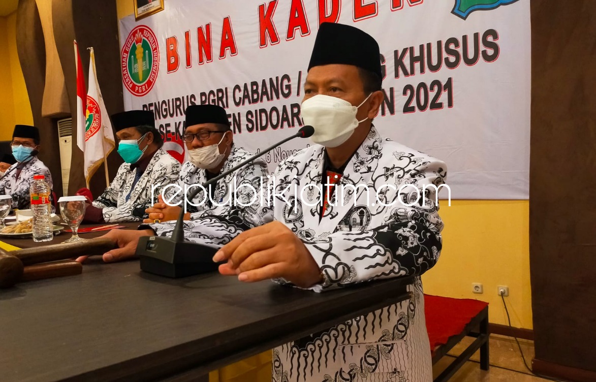 Hal ini disampikan Kepala Dinas Pendidikan Pemkab Sidoarjo, Dr Tirto Adi saat memberi sambuta agenda Bina Kader Pengurus Cabang PGRI Sidoarjo Tahun 2021 di Convention Hall Bess Resort and Waterpark Malang, Jumat (05/11/2021).