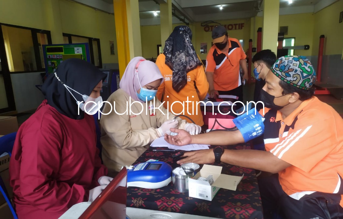Sidoarjo (republikjatim.com) - Ratusan kantong darah berhasil dikumpulkan Unit Transfusi Darah (UTD) PMI Kabupaten Sidoarjo. Hal ini setelah UTD PMI Sidoarjo bekerjasama dengan YPM 8 Sidoarjo menggelar donor darah di sekolah SMK Favorit di Sidoarjo yang ada di JL Raya Sarirogo, Kecamatan Sidoarjo, Sabtu (06/11/2021).