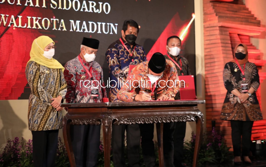 Bupati Sidoarjo, Ahmad Muhdlor Ali menandatangani komitmen replikasi bersama Deputi Bidang Pelayanan Publik Kemenpan RB, Diah Natalisa dan Gubenur Jawa Timur, Khofifah Indar Parawansa. Penandatanganan ini disaksikan Menteri Pendayagunaan Aparatur Negara dan Reformasi Birokrasi (Menpan RB), Tjahyo Kumolo.