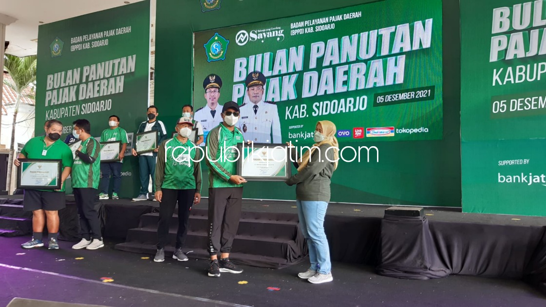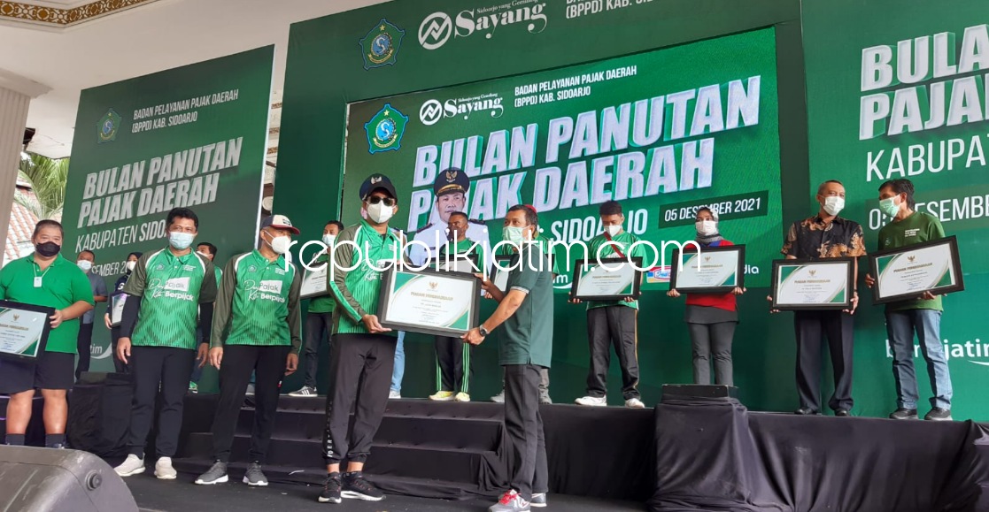 Sidoarjo (republikjatim.com) - Bupati Sidoarjo, Ahmad Muhdlor Ali memberi penghargaan kepada 30 Wajib Pajak (WP). Puluhan WP itu mendapatkan penghargaan karena ketaatannya membayar pajak.