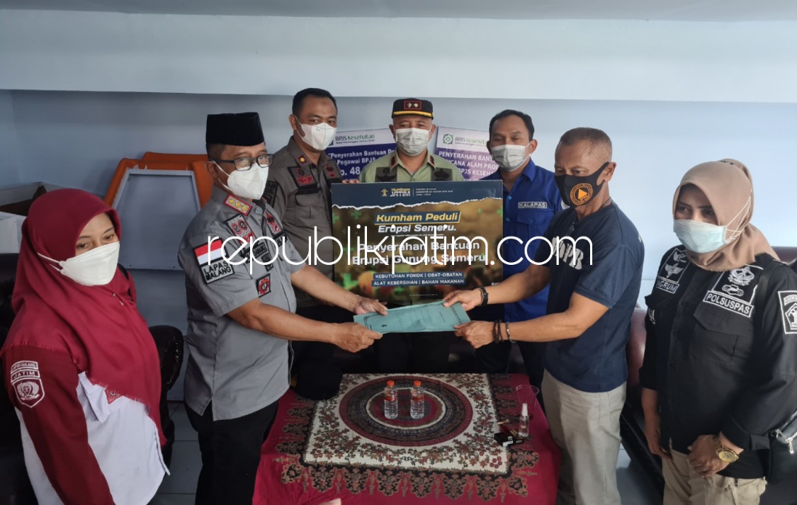 Lumajang (republikjatim.com) - Gerakan solidaritas kepada korban Erupsi Semeru ditunjukkan Kanwil Kemenkumham Jatim dan jajarannya. Melalui program Kumham Peduli Erupsi Semeru, korps baju biru langit itu mengirimkan satu truk bantuan kepada para korban bencana, Jumat (10/12/2021). Penyaluran bantuan ini merupakan penyaluran tahap pertama.