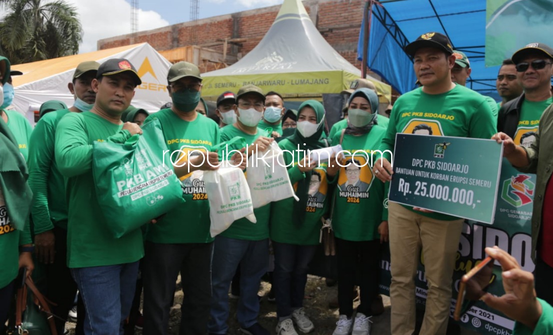 Sidoarjo (republikjatim.com) - Dewan Pimpinan Cabang Partai Kebangkitan Bangsa (DPC PKB) Kabupaten Sidoarjo mengirim bantuan sosial (Bansos) dan relawan untuk korban awan panas guguran Erupsi Semeru di Lumajang. Bantuan ini diserahkan di posko peduli Semeru PKB Lumajang yang bertempat di Pesantren Ulul Albab Candipuro, Kabupaten Lumajang.