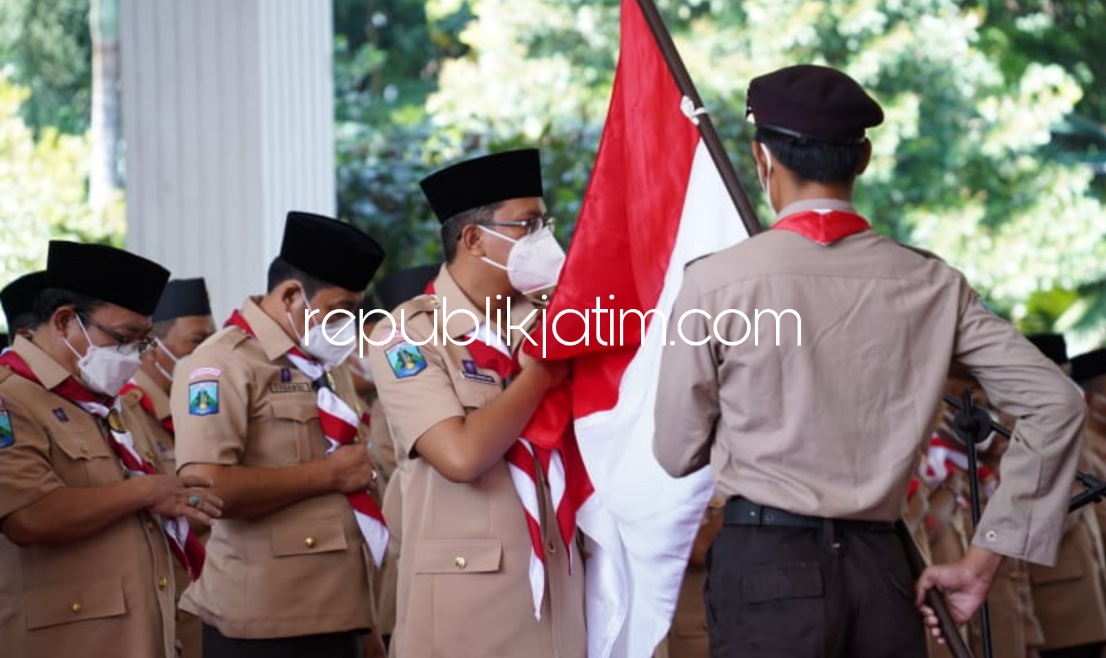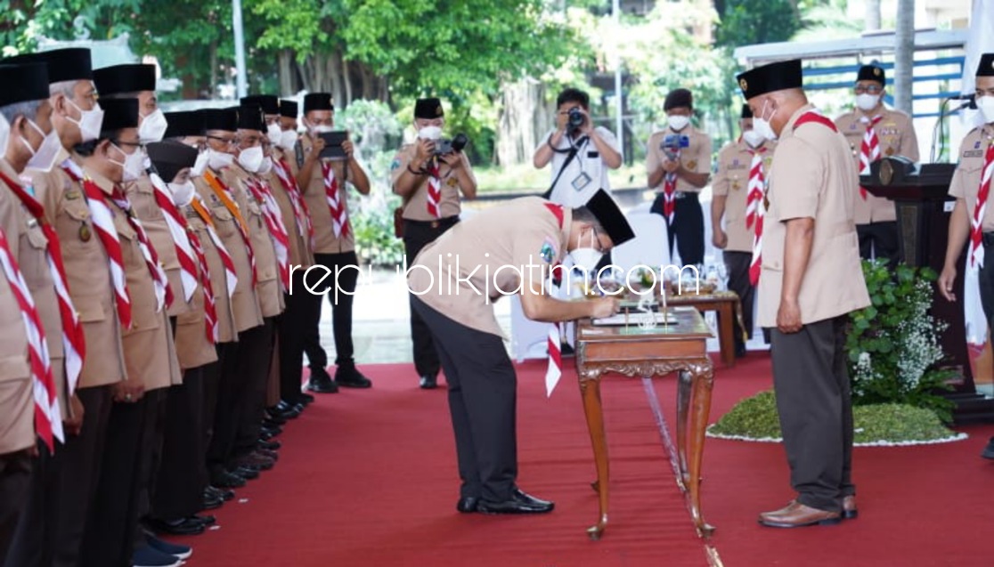 Dalam acara pelantikan itu, Ketua Kwarda Gerakan Pramuka Jawa Timur, Arum Sabil melantik Mabicab, Kwarcab dan LPK Gerakan Pramuka Kwartir Cabang Sidoarjo Masa Bakti 2021-2026 di Pendopo Delta Wibawa. Adv/Hel/Waw