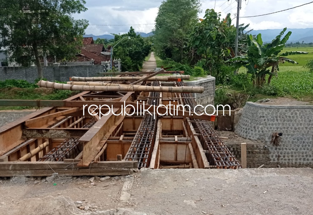 "Kondisi proyek sampai akhir tahun belum selesai pekerjaannya. Seperti Jembatan Doplang tidak bisa dilewati karena dipasang besi di atasnya. Karena sejak hujan deras itu dan banjir sudah tidak ada pekerjanya sampai sekarang," ujar Bejo warga sekitar jembatan kepada republikjatim.com, Selasa (04/01/2022).