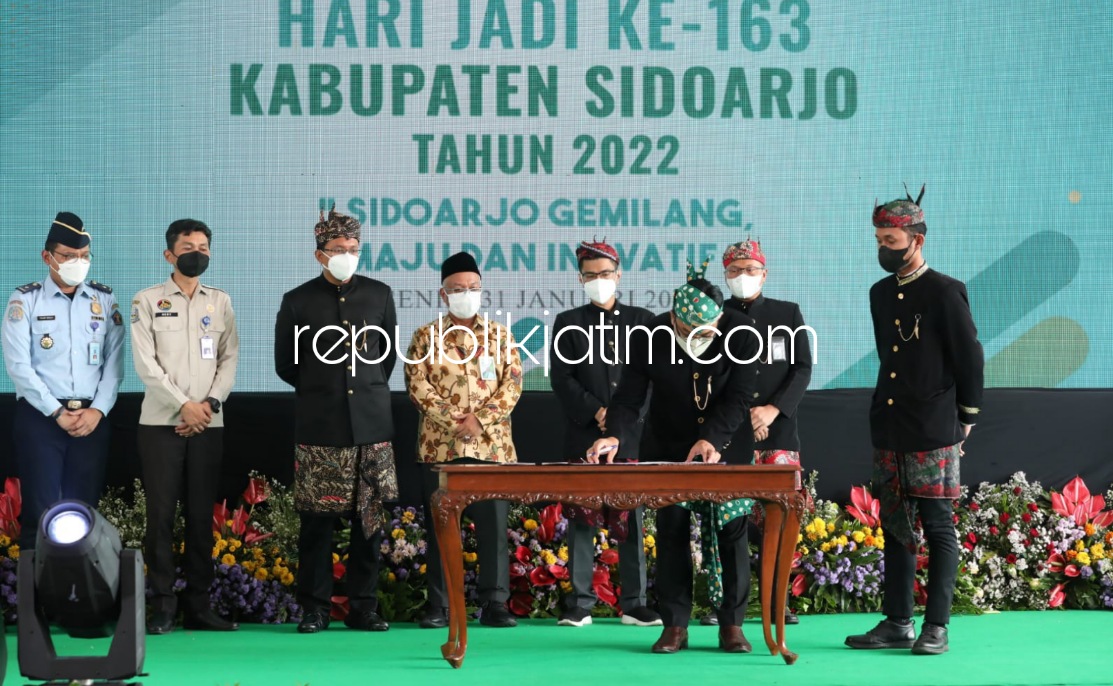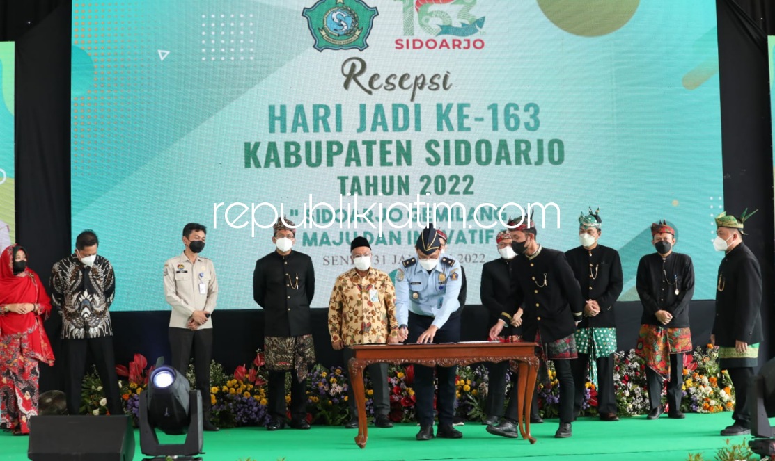 Sidoarjo (republikjatim.com) - Aplikasi SiPraja versi 3.0 layanan berbasis virtual dilaunching Bupati Sidoarjo, Ahmad Muhdlor Ali bersama Forkopimda Sidoarjo bertepatan dengan malam puncak peringatan Hari Jadi ke 163 di Pendopo Delta Wibawa, Sidoarjo, Minggu (30/01/2022) malam.