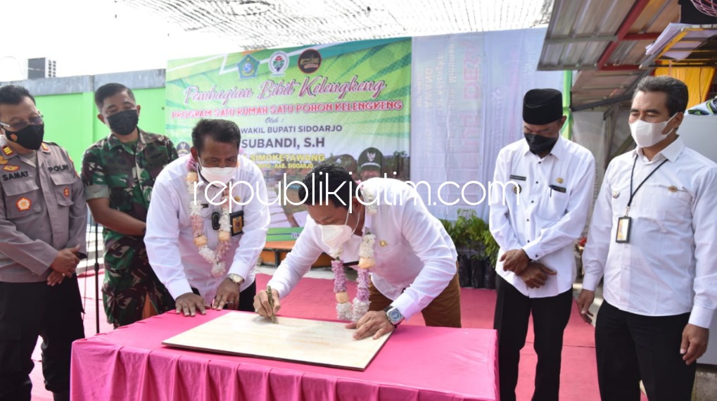 Sidoarjo (republikjatim.com) - Pemerintah Desa (Pemdes) Simoketawang, Kecamatan Wonoayu, Sidoarjo membuat program satu rumah satu pohon Kelengkeng. Sebanyak 500 bibit pohon Kelengkeng dibagikan secara gratis oleh Pemdes Simoketawang ke warganya.