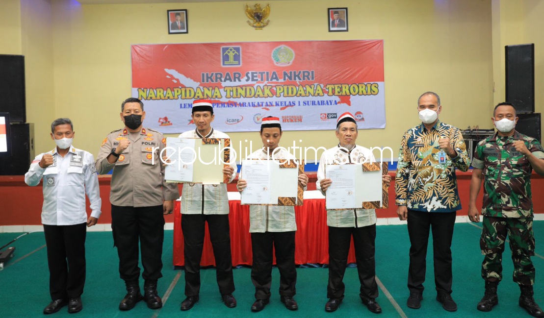 Ikrar disaksikan langsung Plt Kepala Kanwil Kemenkumham Jatim Wisnu Nugroho Dewanto dan stakeholder terkait dari Kementerian Agama serta TNI/Polri.
