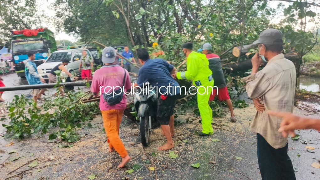Sidoarjo (republikjatim.com) - Hujan deras disertai angin kencang menerjang sejumlah wilayah Krian, Sidoarjo, Selasa (22/02/2022) petang. Akibatnya, sebanyak enam pohon tumbang.
