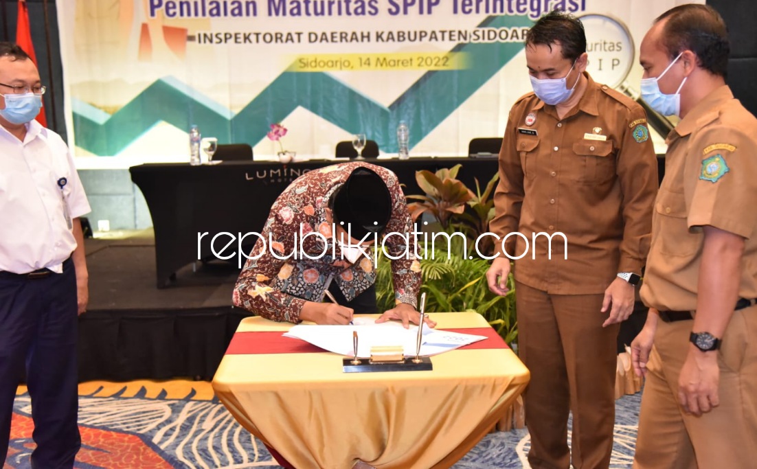 Dalam workshop ini mengundang Badan Pengawas Keuangan dan Pembangunan (BPKP) Perwakilan Jatim sebagai narasumber. Salah satu materi yang disampaikan adalah Pedoman Penilaian Maturitas Penyelenggara SPIP Terintegrasi. Dalam kesempatan itu juga dilakukan penandatangan laporan Program Kerja Pengawasan Tahunan (PKPT) Inspektorat oleh Bupati Sidoarjo. Hel/Waw