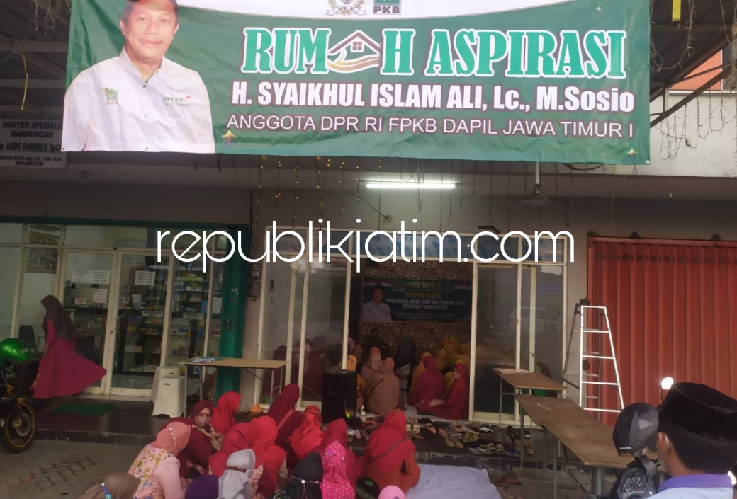 Sidoarjo (republikjatim.com) - Anggota Fraksi PKB DPR RI, Syaikhul Islam Ali meresmikan Rumah Aspirasi di Ruko Surya Garden, Desa Sidodadi, Kecamatan Candi, Sidoarjo, Senin (18/04/2022) petang. Selain membuka rumah aspirasi yang bakal dimanfaatkan untuk pelatihan pemasaran secara online bagi para pelaku usaha mikro kecil menengah serta industri kecil, juga digelar sosialisasi 4 pilar kebangsaan.