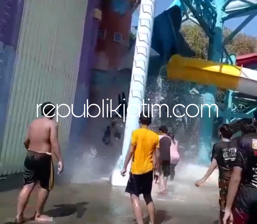Surabaya (republikjatim.com) - Sebanyak 16 orang pengunjung menjadi korban insiden kecelakaan ambrolnya seluncuran (perosotan) Kolam Renang Kenjeran Water Park (Kenpark) di JL Raya Kenjeran Surabaya, Sabtu (07/05/2022) siang.